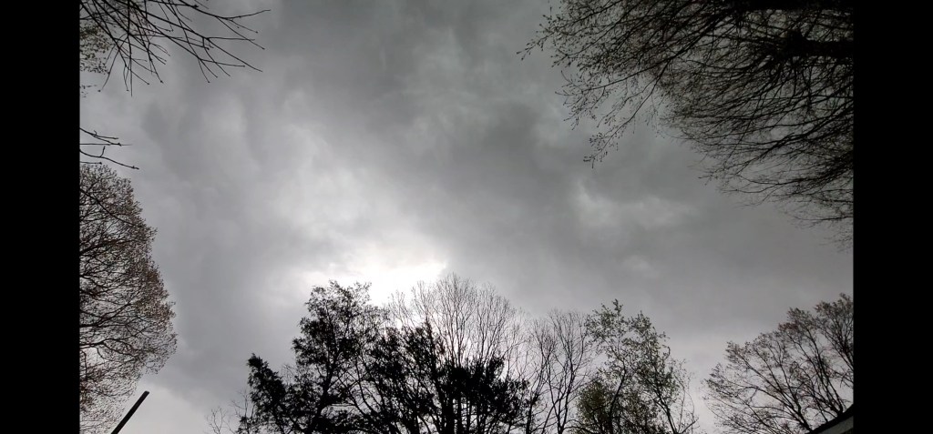 We each headed back to our yards, still carrying on our conversations. As I was just about to walk up my front porch steps, I stopped and looked straight up. I grabbed my phone and started filming. Mrs. Denise hollered at me, ‘what is it?’ Still filming, I replied, ‘we’re not done…we’ve got a trailer!’ I stopped filming, and immediately called out to my neighbor guys. “Ya’ll, we’ve got a trailer coming…get your families in the house now!” I told Mrs. Denise to grab her purse and my billfold and get in our safe spot…the other men were giving similar instructions to their families as well. As all of this was happening, the weather services were beginning to make the announcement that there was indeed a trailer, bigger…stronger than the first one, and it was already on the ground west of town, headed due East. The sirens began going off for the second time of the day, we were not done by a long shot. I made my way back to the middle of my road, and aimed my camera west. The other three had rejoined me. The air became deadly still…and silent. The air became way thicker than before…it was if you could slice it with a knife. There was no sounds anywhere other than the rumbles of the oncoming storm.